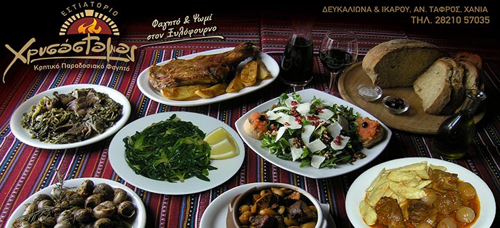 The philosophy of the Chrysostomos restaurant is the preparation of genuine Cretan flavors cooked in the wood oven that are made With appetite, taste and authentic quality Cretan materials, mainly taken from the land of Sfakia. Together with friendly service, The decoration with traditional tools and objects of everyday life of the Cretan era of the past, you will feel the Genuine hospitality and the warmth of a Cretan homemade.
