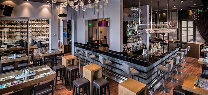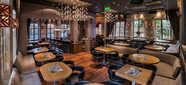 The Palace boasts modern, unique style of which characterize the bright areas with sofas, wooden tables and a bar, and a luxurious comfort. Whether you choose the media room or book tables outside, overlooking the sea, our music -electro, lounge, classic soul & funk- will accompany you, completing the Your experience and creating the right environment for to enjoy our unique food.
