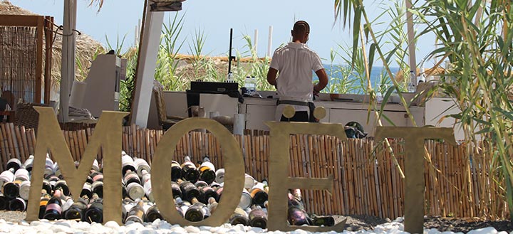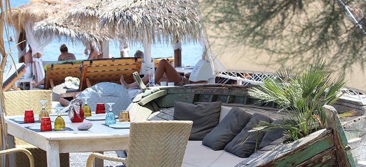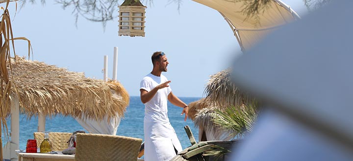 Όλα ξεκινούν στην παραλία με τις αναπαυτικές ξαπλώστρες τις αφράτες πετσέτες και ομπρέλες με ψάθα που δίνουν νότα εξωτική. Από φρέσκο χυμό και κοκτέιλ μέχρι σούσι και περιποιημένα πιάτα, το beach service που θα απολαύσετε εδώ είναι υποδειγματικό. Ξαπλωμένοι, διαβάζετε το βιβλίο σας με την σαμπανιέρα δίπλα να κρατά δροσερό το νερό το κρασί ή την σαμπάνια.